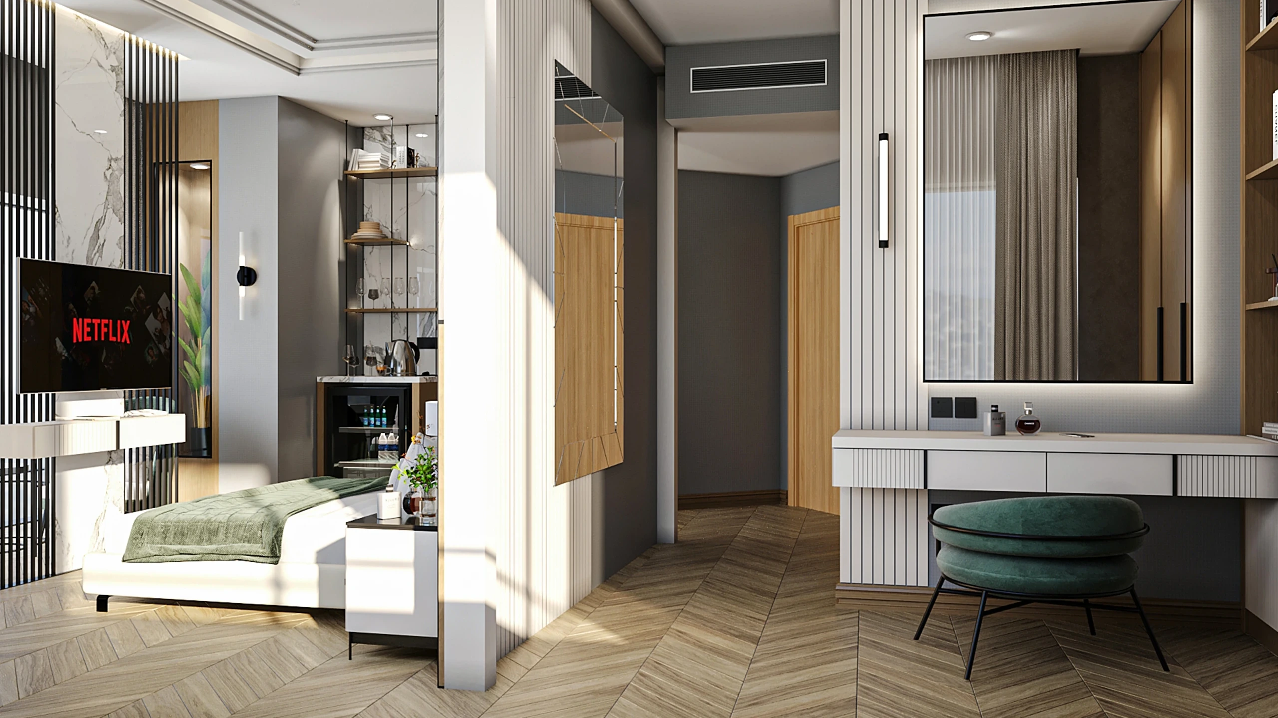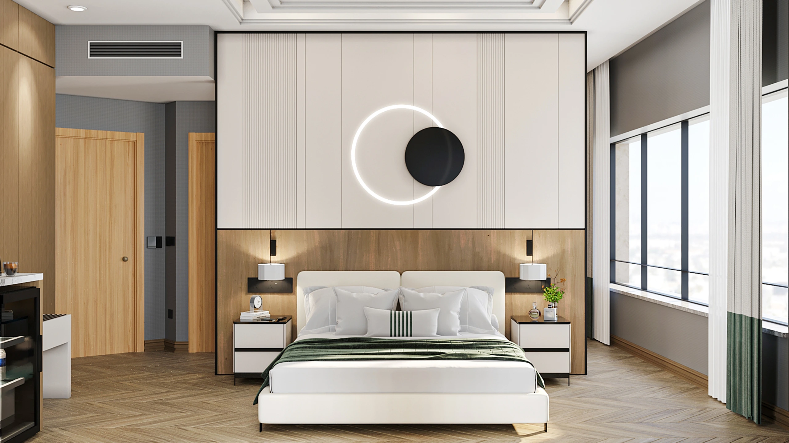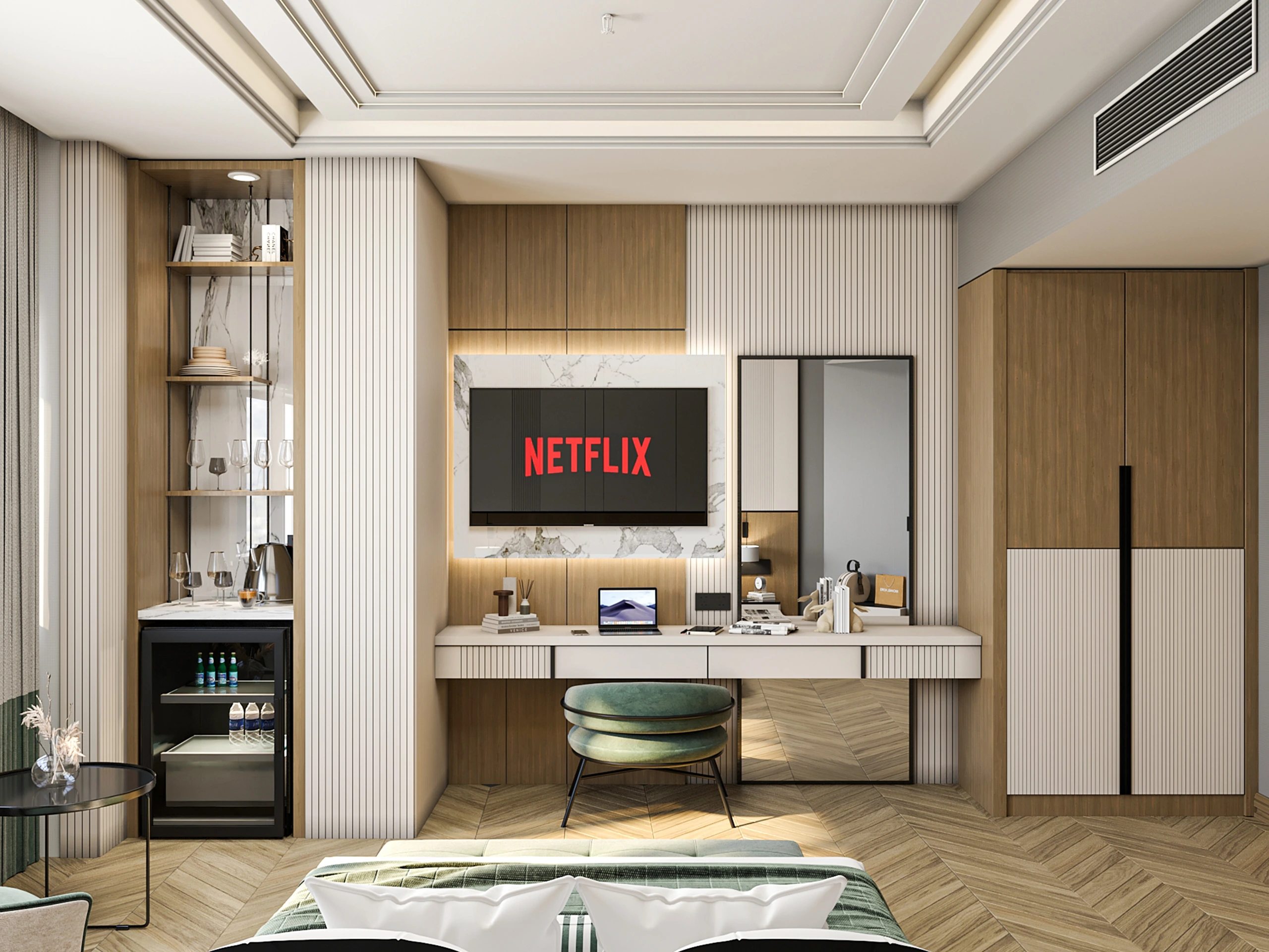 Our design aims to renovate the guest rooms, corridors, and offices in a functional and stylish way. The renovation works are ongoing, and our designs will enhance the overall atmosphere of the hotel, offering guests a more comfortable experience.